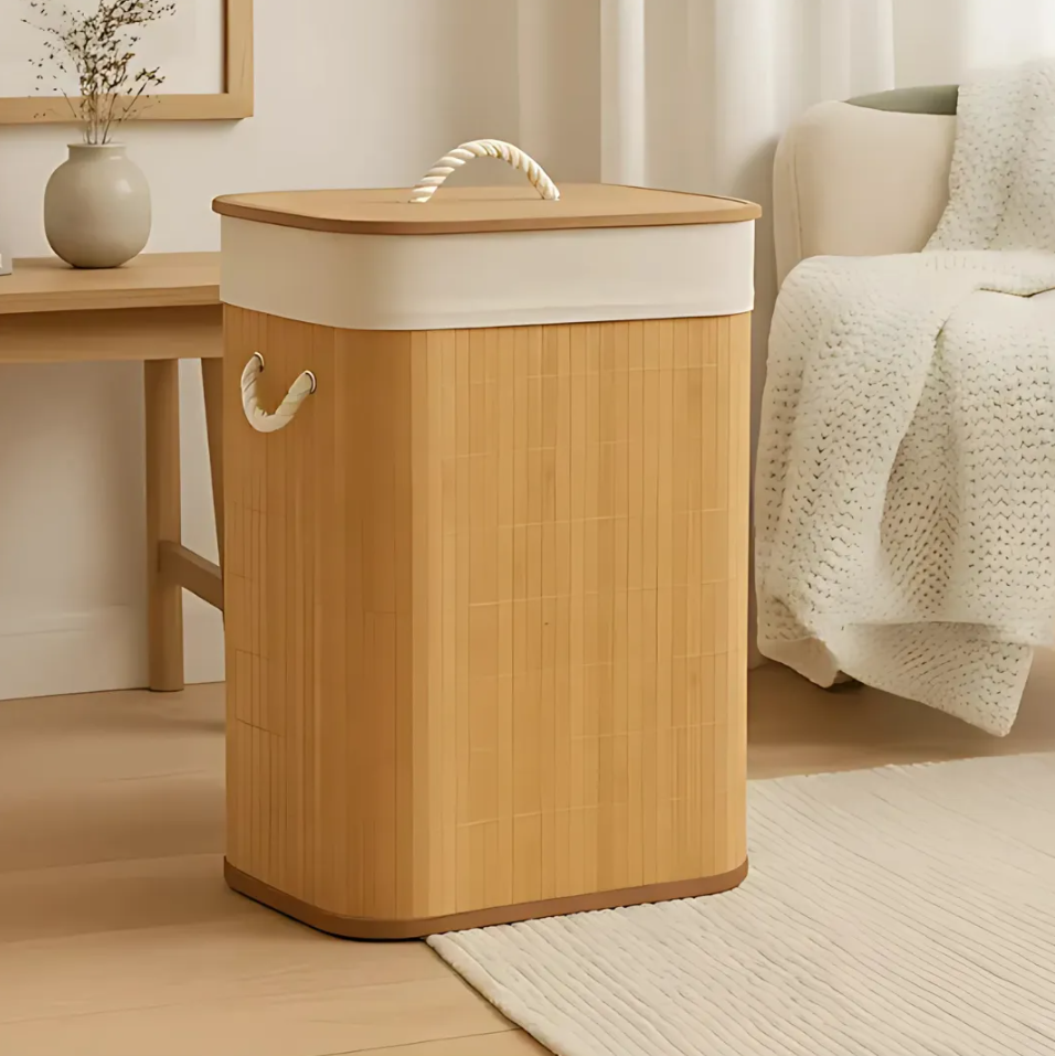 - Cesto De Roupa Suja 72l De Bambu Dobrável Alças Malular Natural Lisa